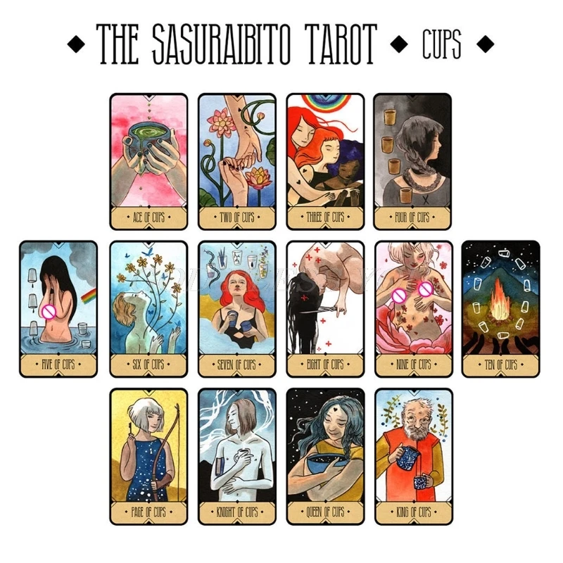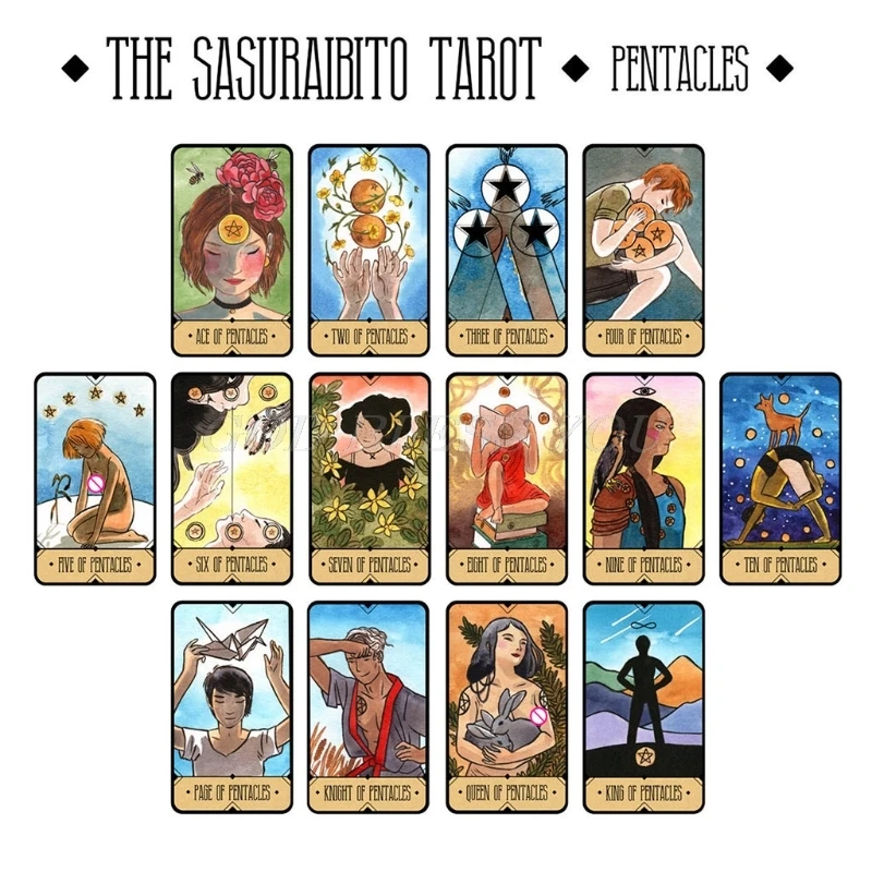 The Sasuraibito Tarot 78 Cards Deck and Guidebook Gilt Edge Card Family Party Board Game Oracle Card Divination Fate