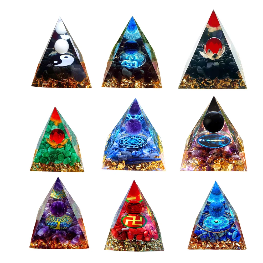 5cm Natural Stone Orgonite Pyramid Crystals Orgone Energy Generator Healing Reiki Chakra Meditation Ornaments Crafts Home Office Art Decoration Gift