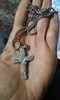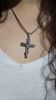 Usei essa corrente por 23 dias antes de avaliar aqui. Lavei, tomei banho usando ela e não mudou de cor. Não me causou alergia (que geralmente tenho quando uso correntes de metal) e tem uma construção robusta, tanto da corrente quanto do pingente. A corrente tem 50 cm de extensão e não ficou muito curta ou muito longa para mim, que tenho 1.57 cm de altura. A cruz tem 2.7 cm de largura e 4 cm de altura (4.2 cm, se contar com a pequena argola que segura o prendedor da cruz). Pedi dia 27/01 e chegou dia 04/02 no interior do nordeste no Brasil.
