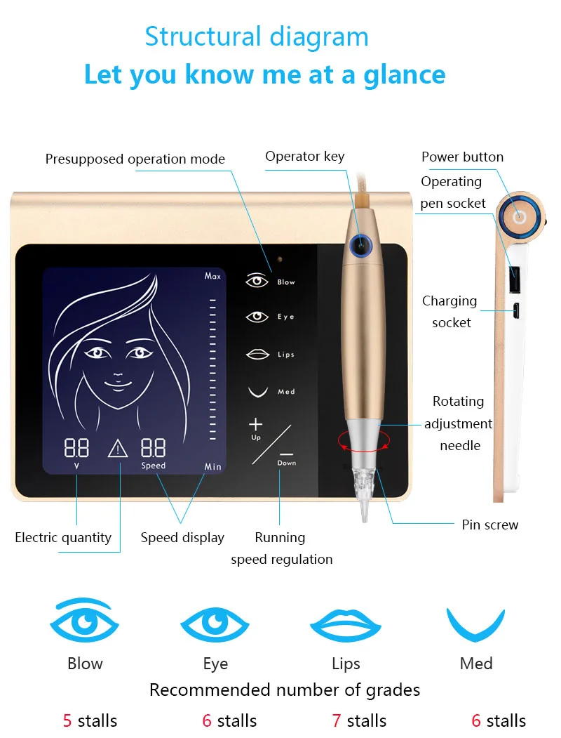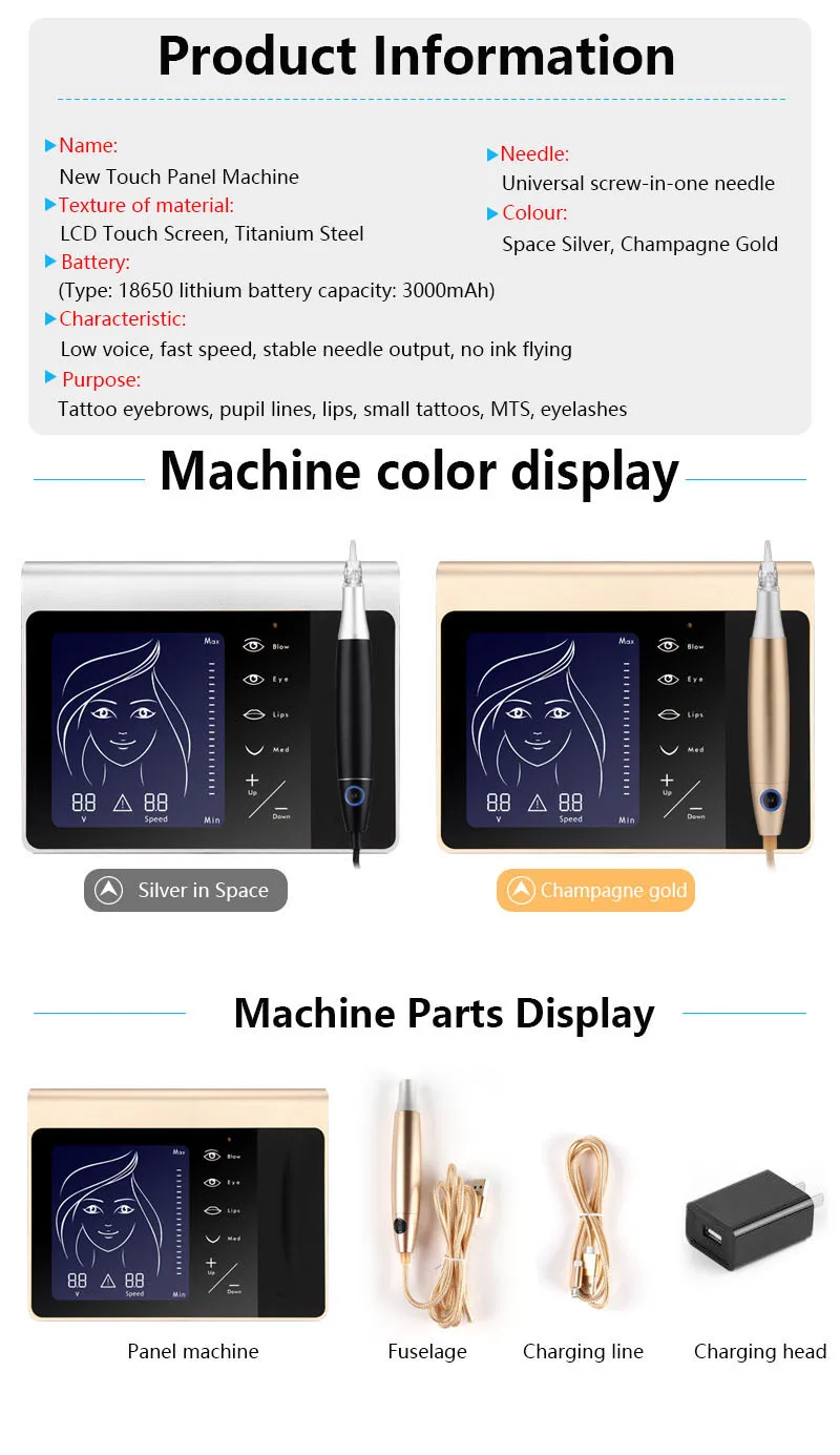 Upgrade Touch Screen Rechargeable Battery Permanent makeup Machine Kit for Eyebrow Lip Eyeliner Machine With 50pcs Neeldes