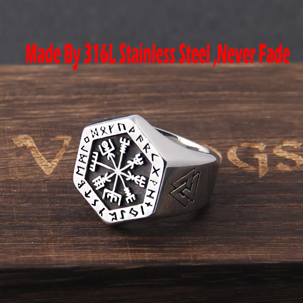 Name:Never Fade Stainless Steel Viking Compass Runic Statement Rings Men Vintage Color Nordic Viking Totem Odin Men Rings Jewelry