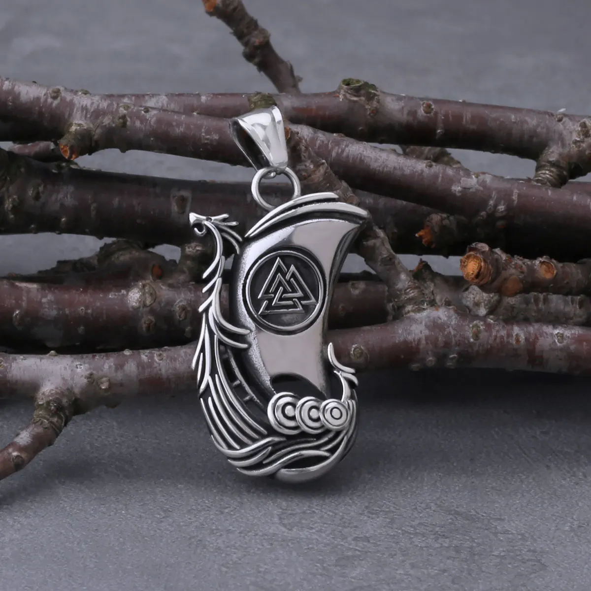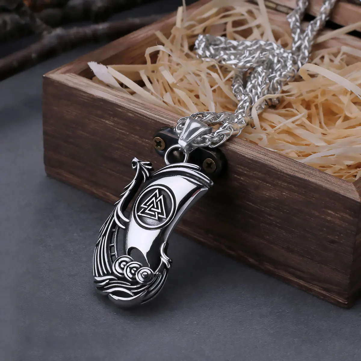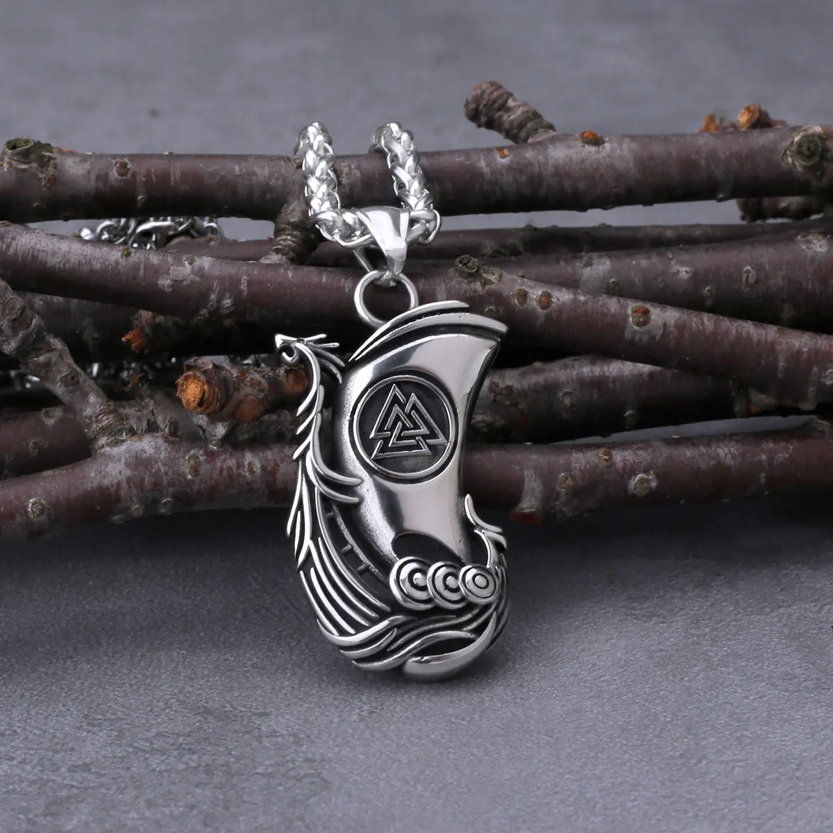 Viking Dragon Ship Odin Rune Pendant Nordic Men's Fa…