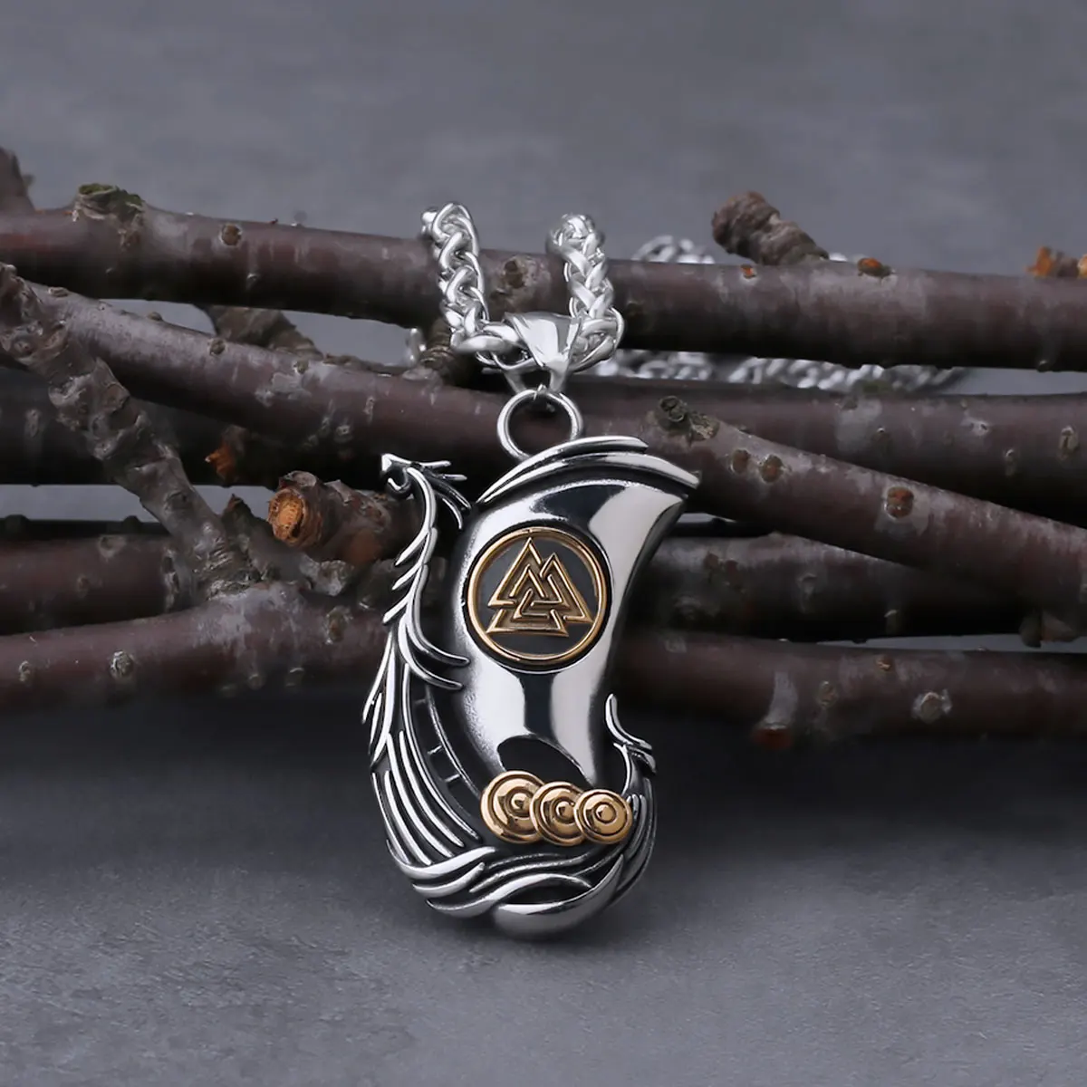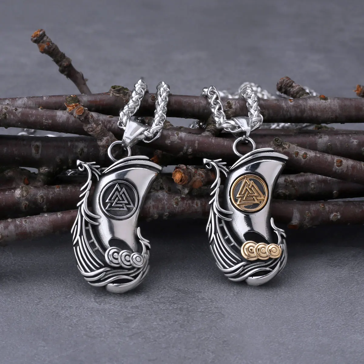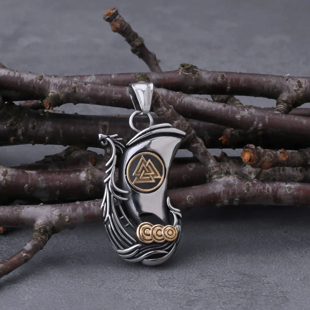 Viking Dragon Ship Odin Rune Pendant Nordic Men's Fa…
