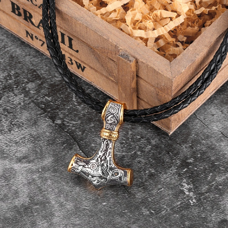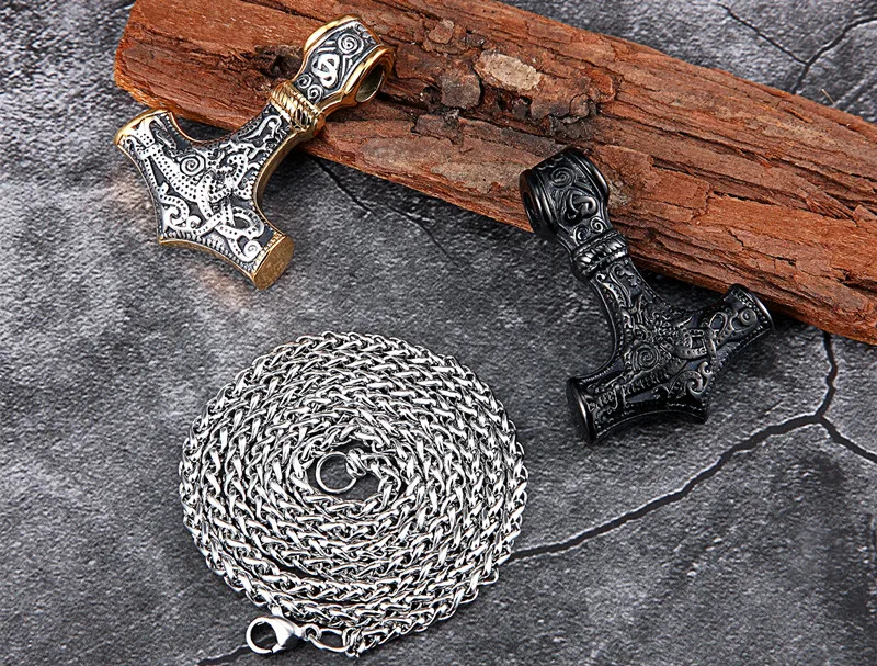 Viking Odin Hammer Anchor Norse Amulet Necklace Gold Genu…