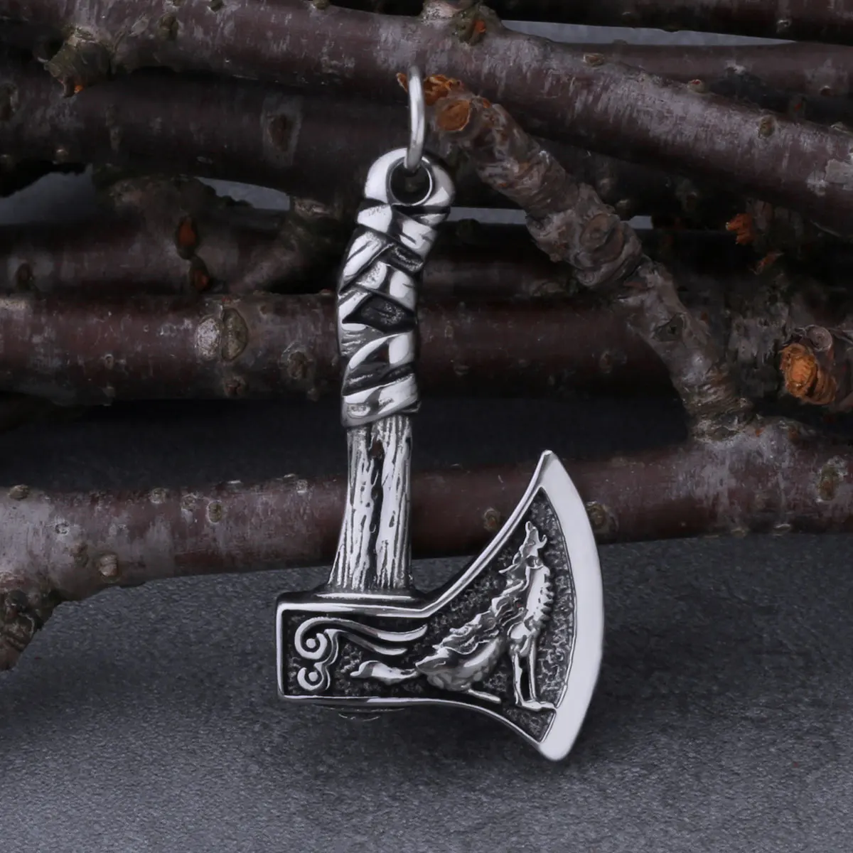 Viking Wolf and Crow Axe Pendant Slavic Odin Amulet Men&#…
