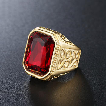 High Quality Big Stone Blue/black/redstone Ring Men Women Punk Stainless Steel Biker Carving Ring Vintage Fashion Jewelry Gift