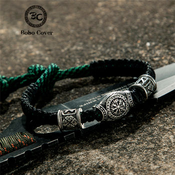 Norse Vikings Axes Wrap Bracelets Men Mjolnir Hammer Camping Paracord Survival Rope Wristband Amulet Handmade Male Jewelry Gifts