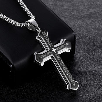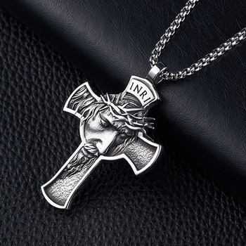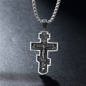 Vintage Stainless Steel Jesus Cross Pendant Necklace Men Biker Amulet Cross Orthodox Chain Necklace Jewelry Gift Wholesale