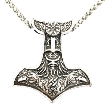 Odin Raven Amulet Nordic Aegishjalmur Helm Of Awe Slavic Kolovrat Thor Hammer Mjolnir Viking Necklace