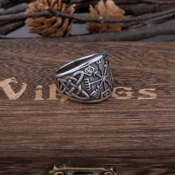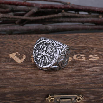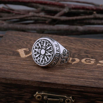 Viking Vintage Compass Rune Stainless Steel Ring Men's Celtic Ring Biker Boyfriend Street Hip Hop Gift Jewelry Band Vikings Box
