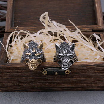 925 sterling silver Viking Double Wolf adjustable ring as gift
