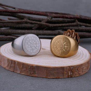 Viking Compass Compass Stainless Steel Domineering Men's Ring Index Finger Retro Surrounding Letter Ring Jewelry Gift