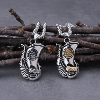Viking Dragon Ship Odin Rune Pendant Nordic Men's Fashion Charm Boyfriend Stainless Steel Pendant Necklace Jewelry Gift