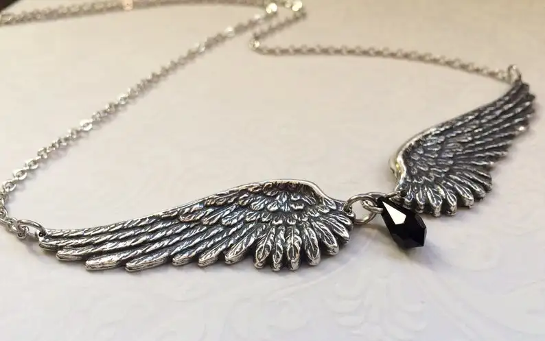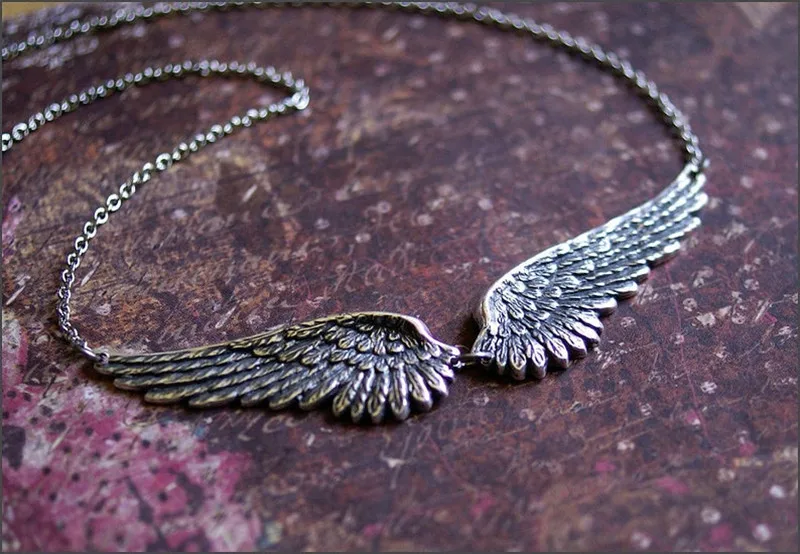 Angel Wings Feather Choker Big Pendant Aesthetic Link Cha…