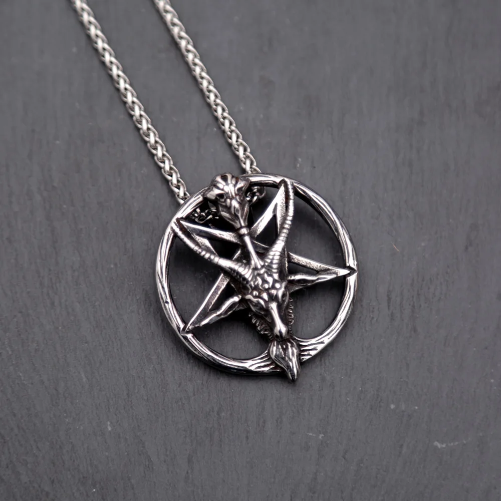 Name:Vintage Inverted Pentagram Satan Goat Necklace Pendant Stainless Steel Baphomet Satanism Necklace Unique Pagan Amulet Jewelry