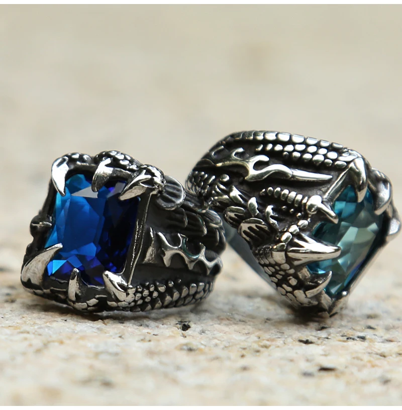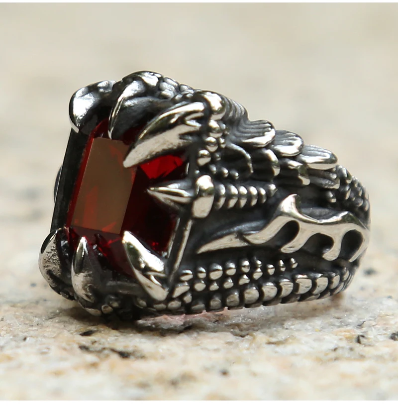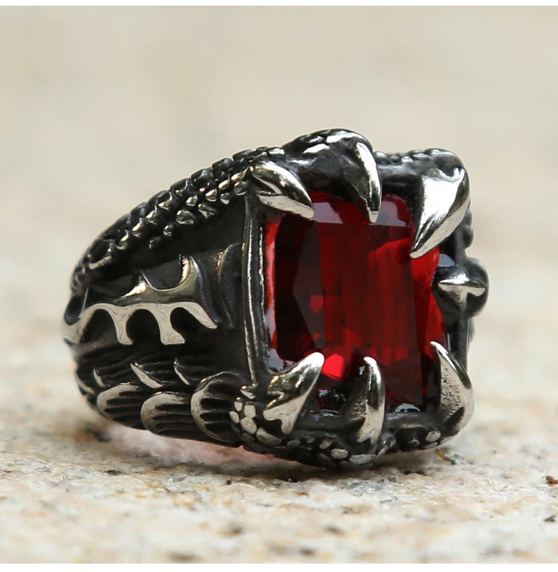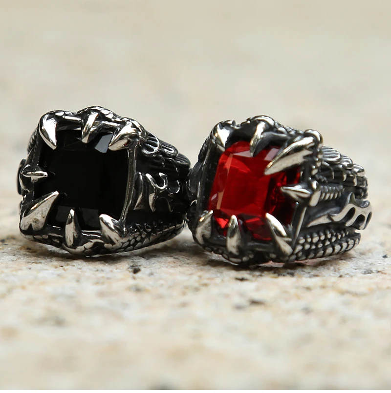 Nordic Viking Dragon Claw Ring With Red Blue Black Punk R…