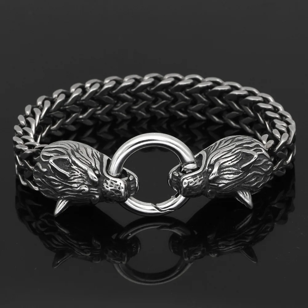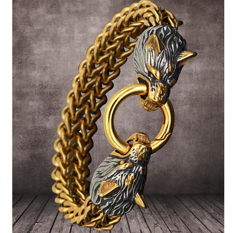 Vintage Norse-Viking Wolf Head Bracelet Punk