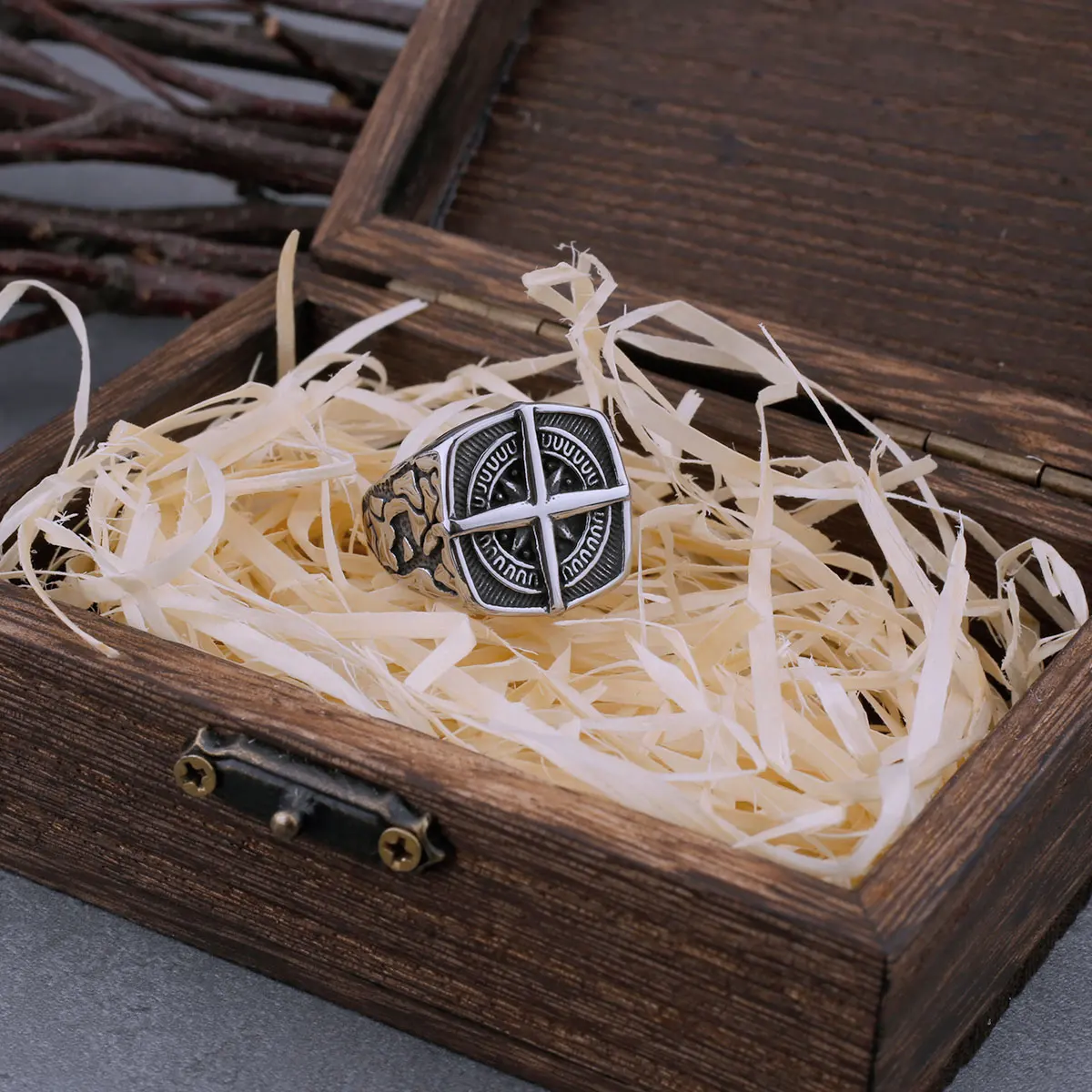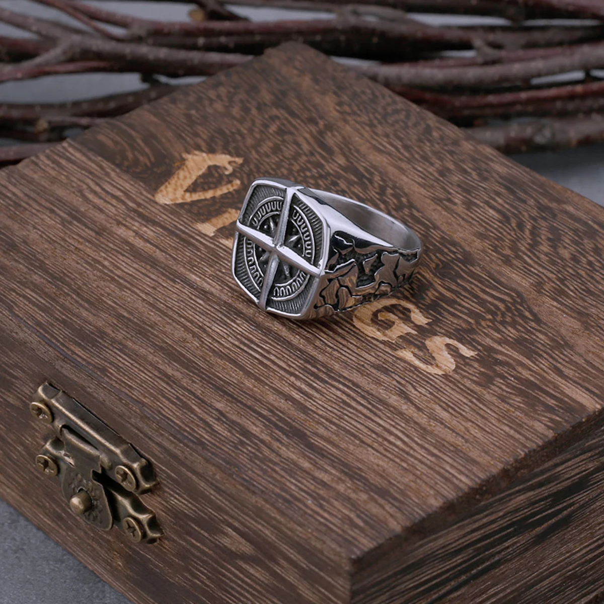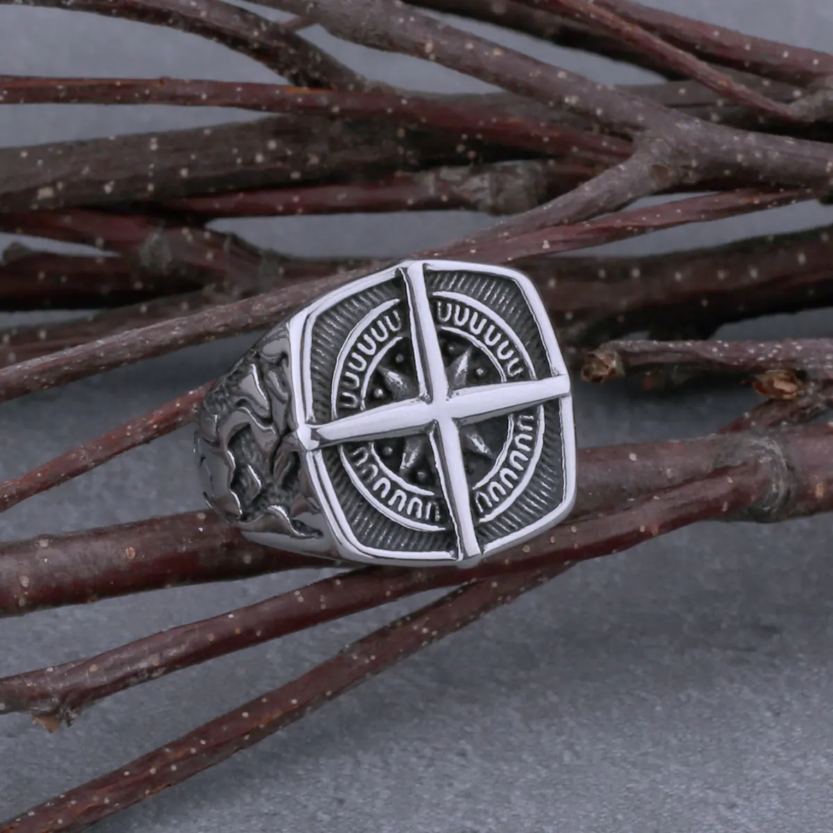 Statement Ring Mens Vintage Nordic Viking Totem