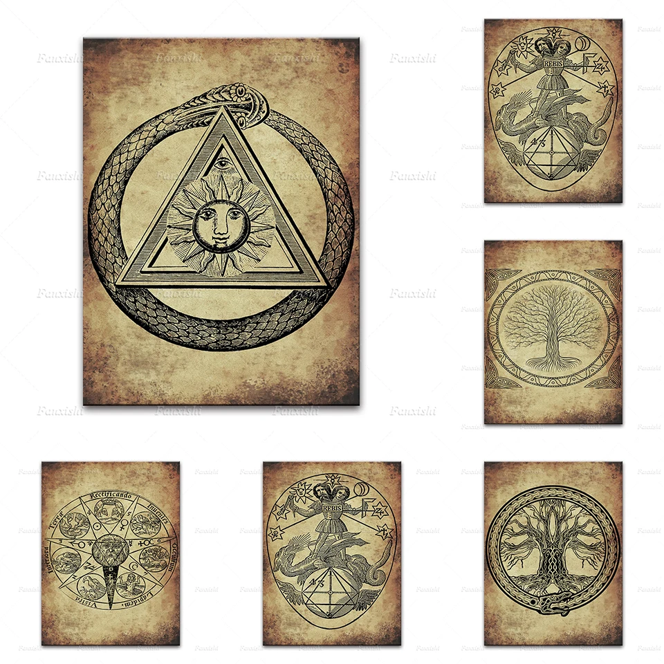 Wall Art Hd Prints 72 Names Of God Occult All Seeing Eye Magick Pagan Poster Home Decor Vintage Modular Canvas Painting