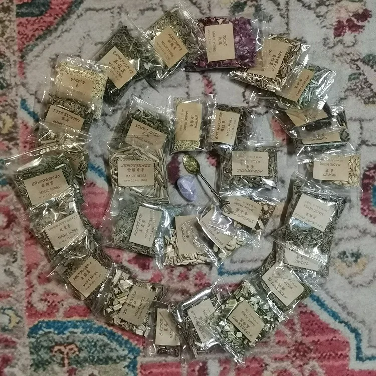 1、Just What You Need: All the witchcraft herbs you like are in a nice suit. Each beautiful gift box has 16 or 30 herbs and antique crystal spoons, so you will always have a pinch of what you need at your fingertips.