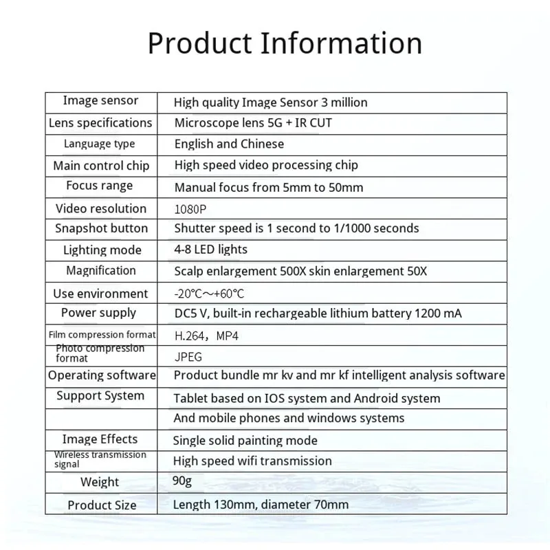2.Wireless WI-FI smart scalp skin detector, make the hair follicles visible.
