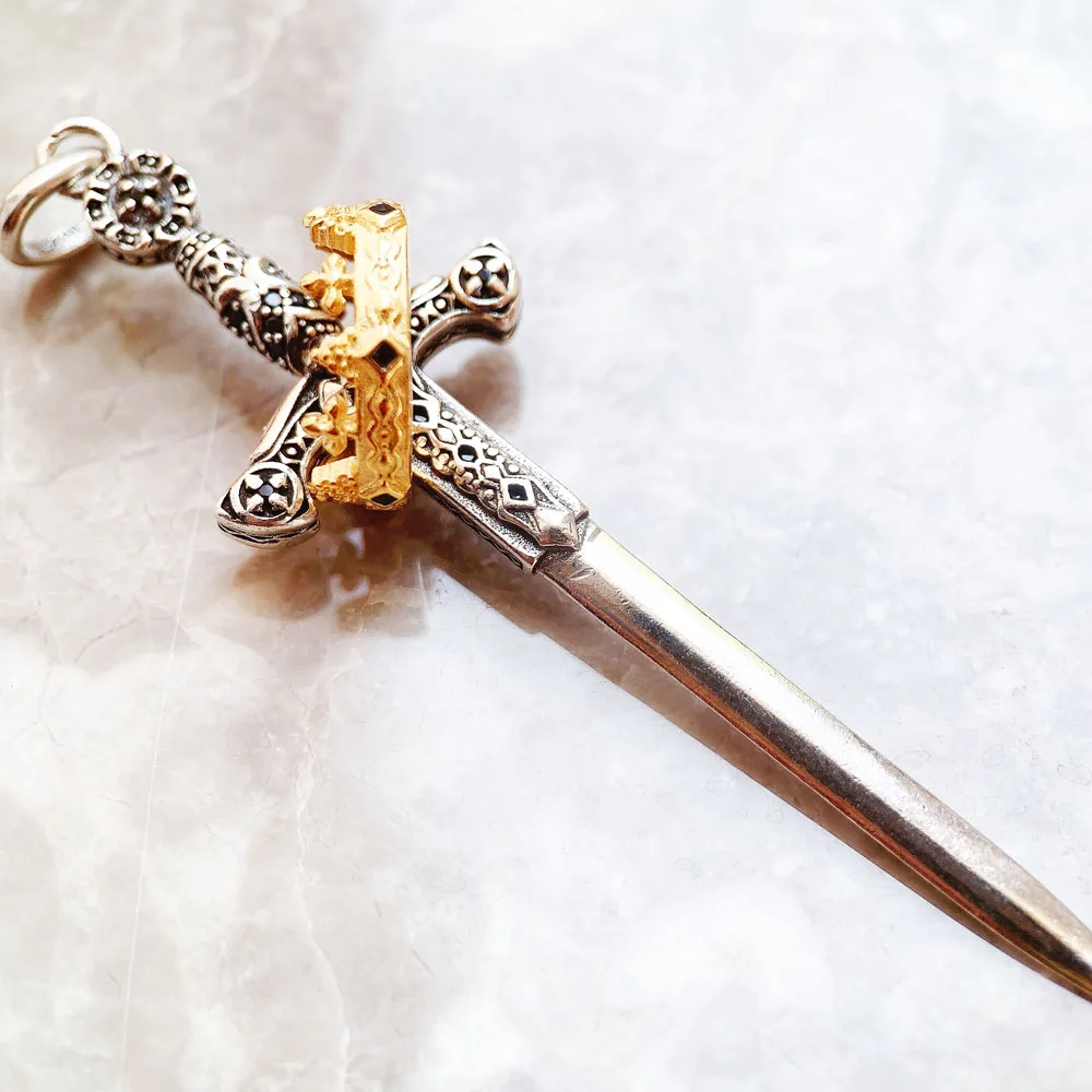 Wisiorek, miecz, z, korona, wiosna, nowy, grzywny, biżuteria, europa, styl, 925, srebro, ochrona, prezent, dla, kobiety, mężczyźni