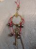 can be hung in two ways; at the top is a high quality swivel lobster clasp to make it easy to clip-on to a suitable hanging source (the clasp opens to a maximum of 5mm) but there is also a red nylon cord for placing over larger door handles and so forth. I have used red cord because of the colour’s Wiccan association with energy.
