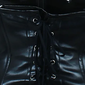 Back Lacing CorsetThe black corset with white stitches has back lacing for waist reduction. |