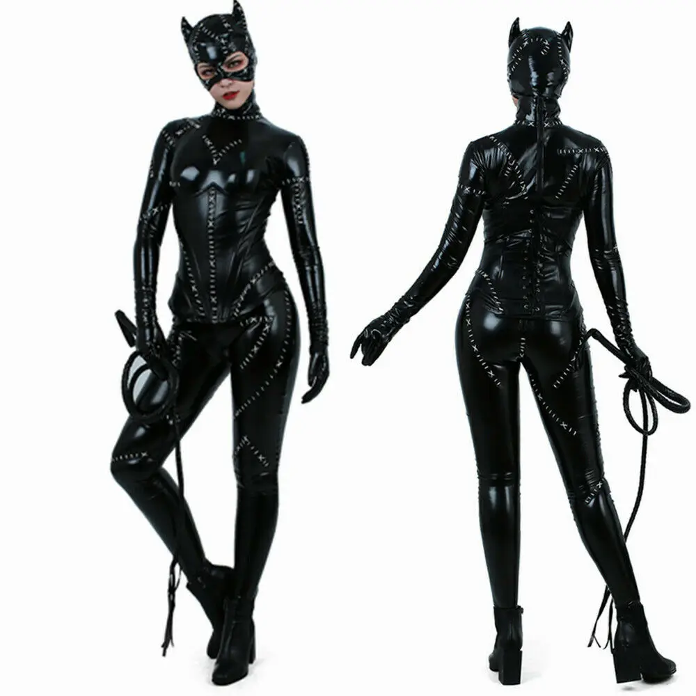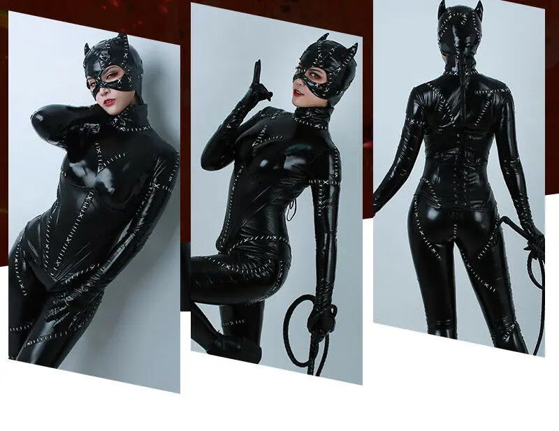 Catwoman cosplay jumpsuit is great for Halloween, comic cons, parties, etc. Also, a wonderful gift for friends.