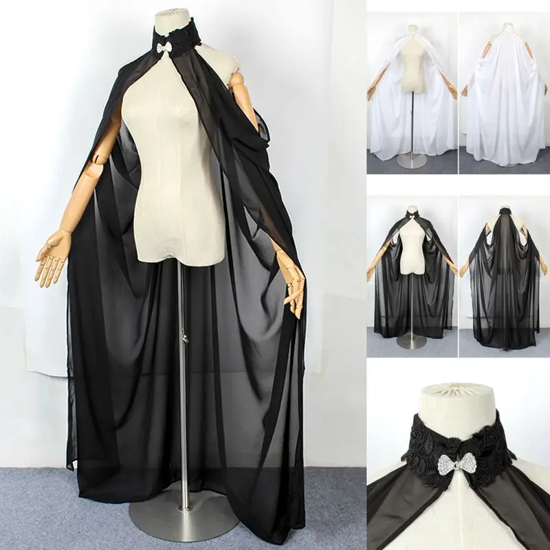 Women Medieval Fairy Shawl Cape Chiffon Wicca Robe Black …