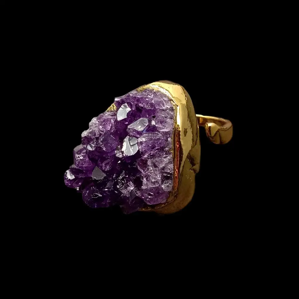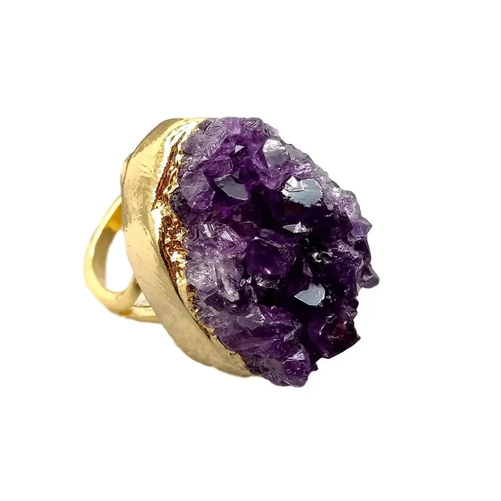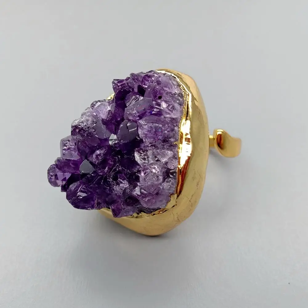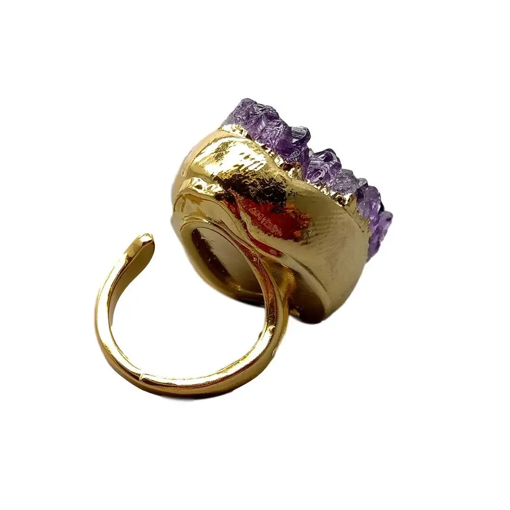 NaturalAmethsytDruzy Cluster Freedom Shape Gold Electroplated Ring Adjustable Women Fashion Jewelry