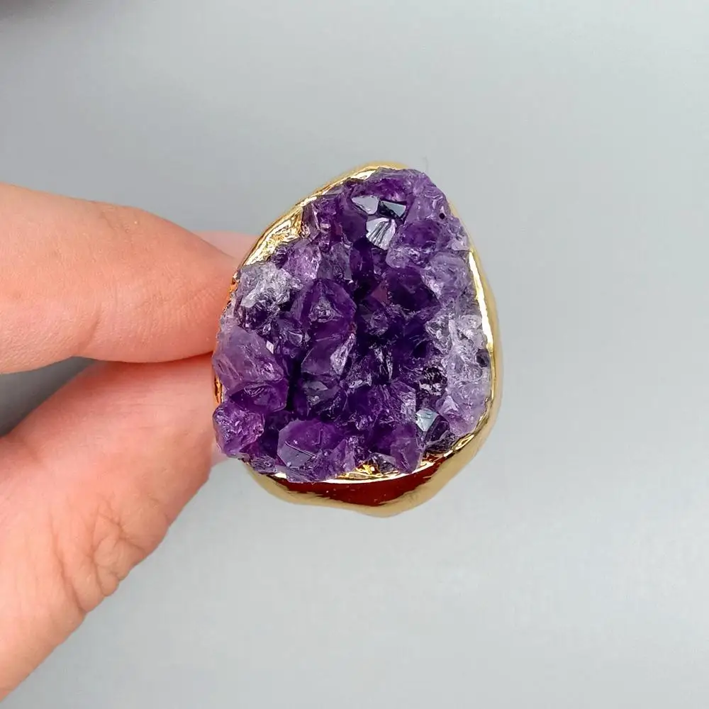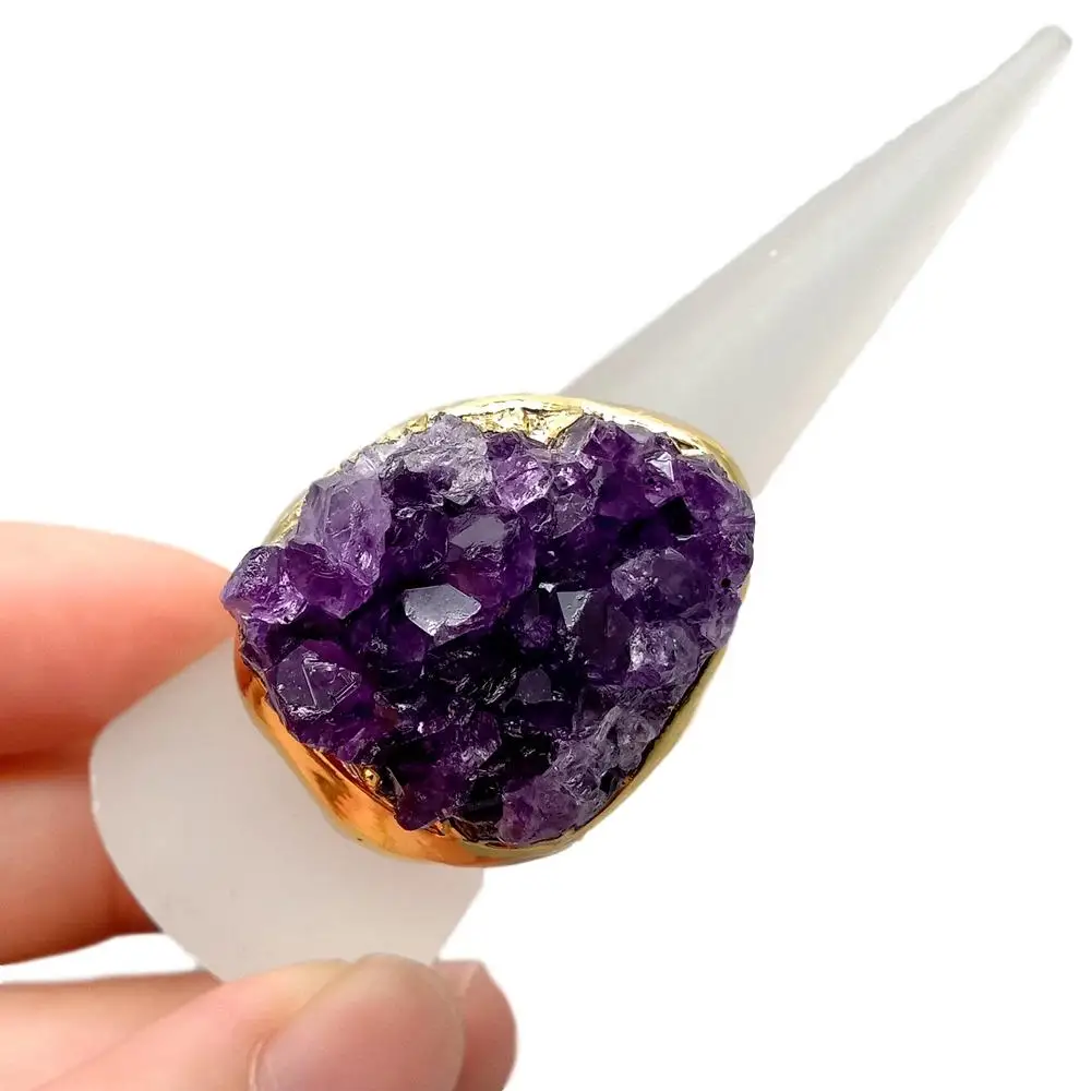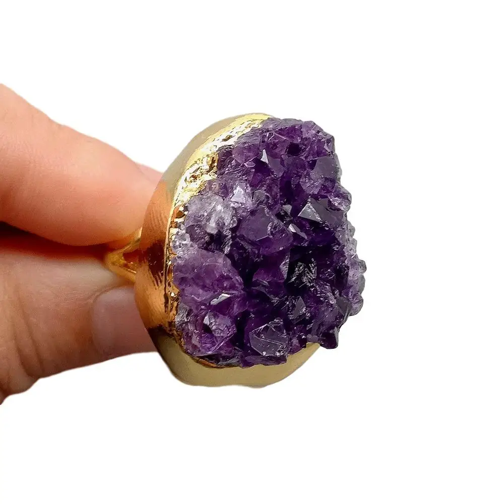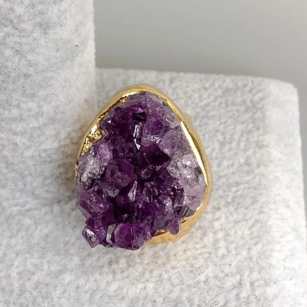 NaturalAmethsytDruzy Cluster Freedom Shape Gold Electroplated Ring Adjustable Women Fashion Jewelry